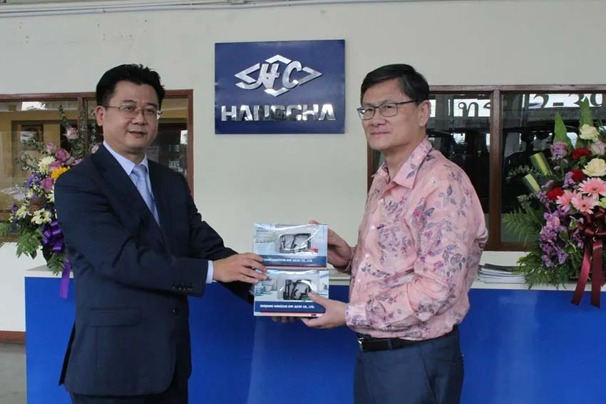 During the visit, Minister Anek Laothamatas watched the demonstration of Hangcha Forklifts and listened to the development process of Hangcha Group. At present, the Thai government is vigorously promoting and developing new energy technologies. The minister showed a strong interest in the lithium battery, hydrogen energy and other new energy forklift trucks of Hangcha, and inquired in detail about the production and the R&D of the company’s lithium battery. Now, Hangcha can offer a full line of forklifts powered by lithium battery that can run in 3 shift operations without battery swapping, and work in applications typically only I.C. powered forklifts could operate in.