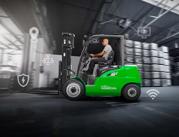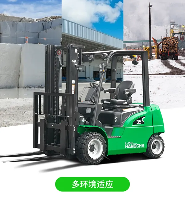 该产品是国内乃至全球领先的锂电专用叉车产品,以3.5t为例,行驶速度19km/h,满载起升速度400mm/s,满载爬坡度20%,整车质量4980kg,转弯半径2270mm,主要技术及性能指标优于国际知名品牌同类产品。
