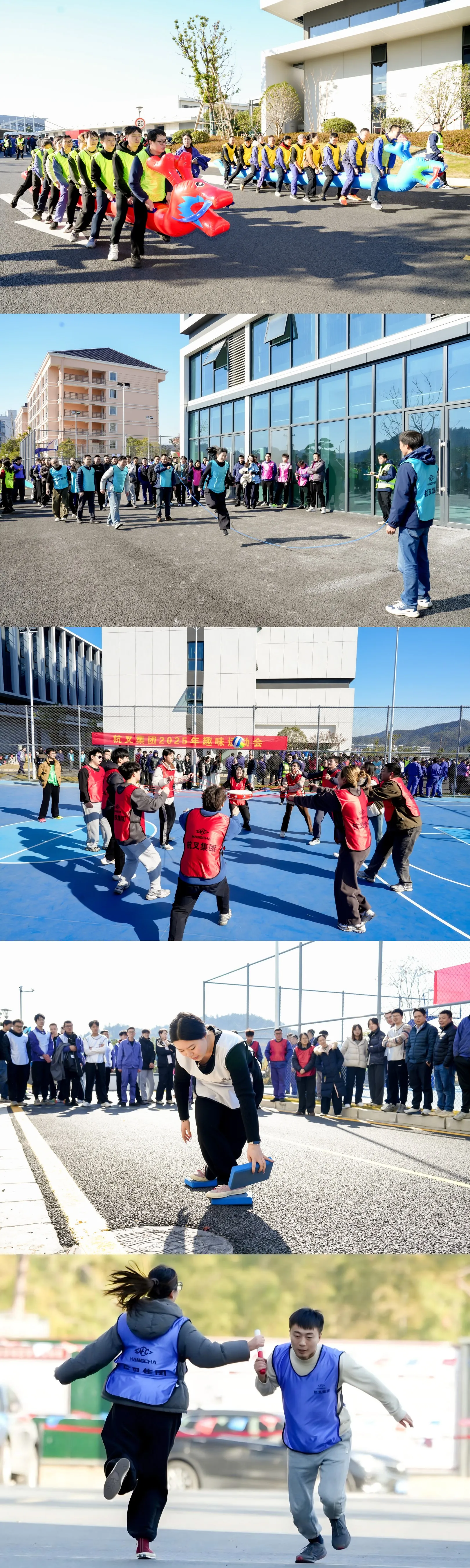 与紧张激烈的技能比武交相辉映,由集团工会和党群办组织的2025年度趣味运动会也在同日的青山、横畈园区篮球场欢乐上演。运动会设有投篮、跳绳、套圈圈等个人项目,以及“4*100米混合接力”、“龙行天下”、“八字绳”、“同心击鼓”、“摸石头过河”等需要高度协作的团体项目。各分工会组成的代表队,在轻松活泼的赛场上挥洒汗水、默契配合,加油声、欢笑声此起彼伏。这场运动会不仅有效缓解了员工的工作压力,丰富了业余文化生活,更进一步增强了团队凝聚力与归属感,为严肃的技能竞赛日注入了轻松愉快的氛围,体现了公司对员工身心健康的关怀。