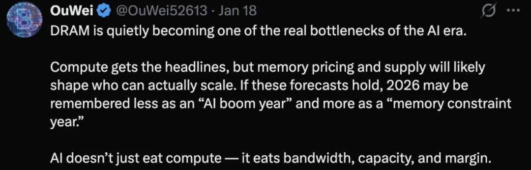 正如上面这位网友所言,2026年,可能不再是AI的「爆发之年」,而是「内存受限」之年: